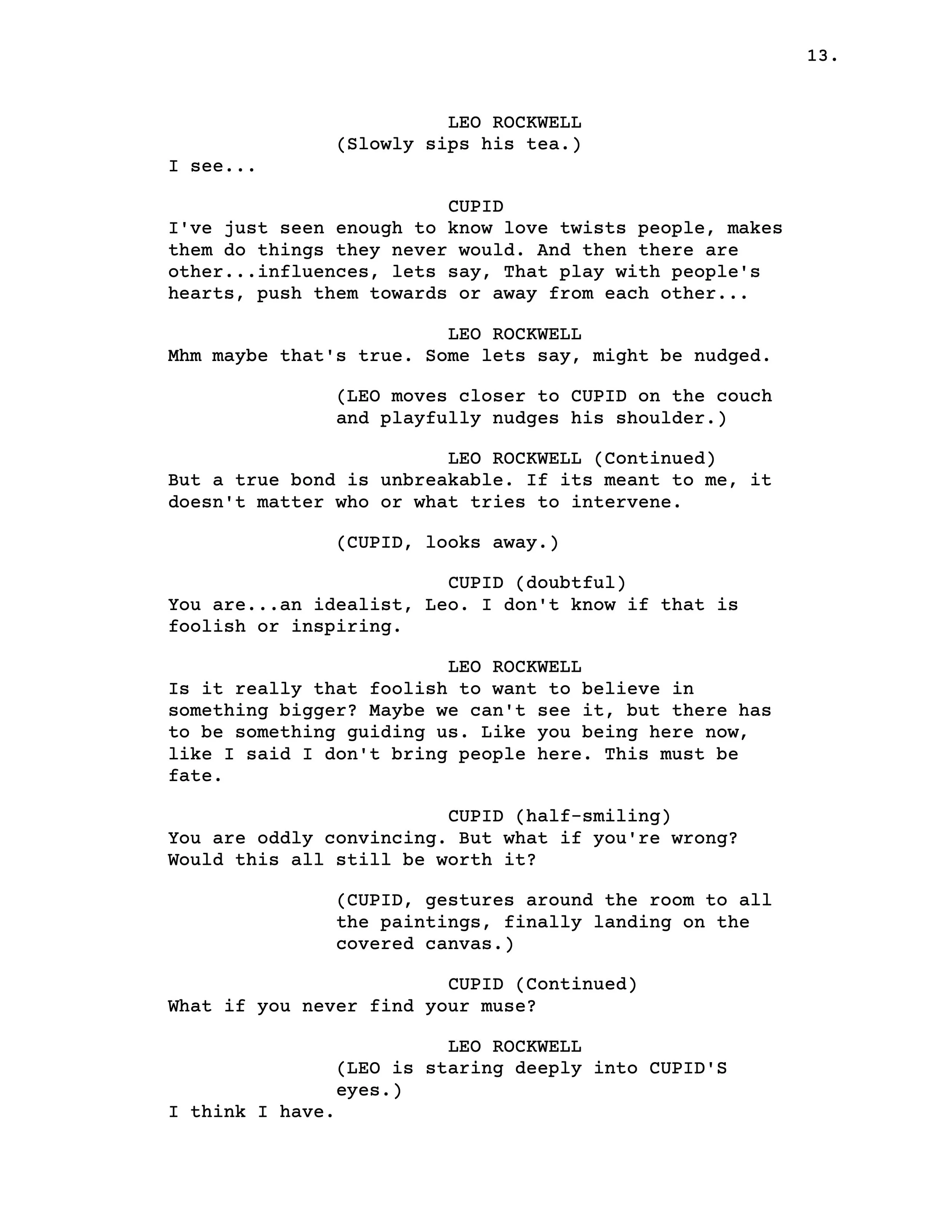 I enjoyed the idea of Cupid falling in love with a mortal artist so much that I wrote a two act play expanding on how they meet as a loose queer retelling of the Cupid & Psyche Myth by Apuleius. At this time my Illustration Professor was encouraging me to experiment with scenic design which led to imagining rough concepts of what this play would look like if it was actually put to stage.